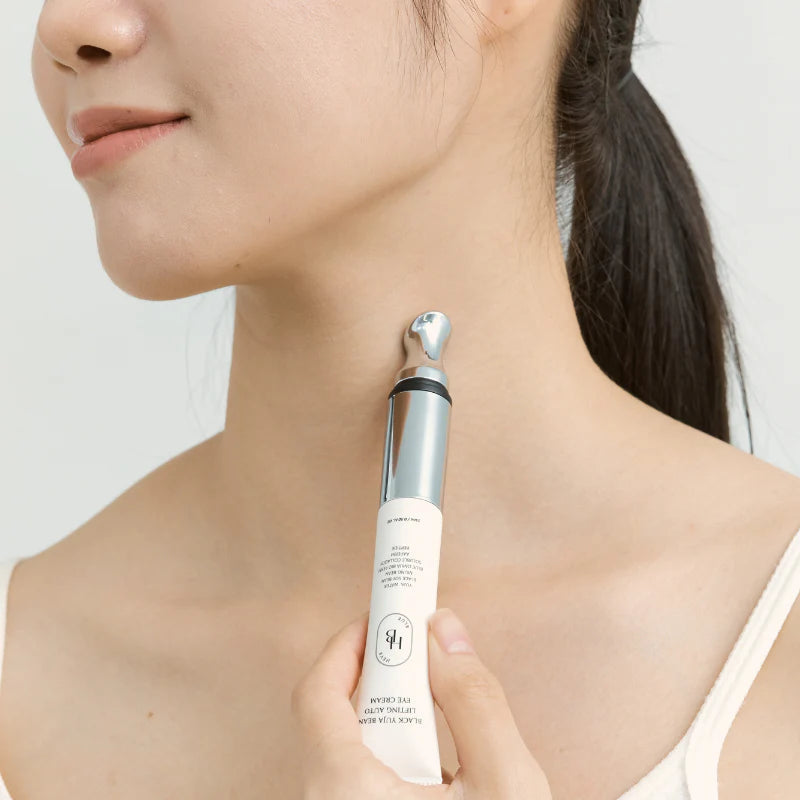 Descubre la (Crema de ojos con vibrador) HEVEBLUE Black Yuja Bean Auto Eye Cream 15ml. Su dispositivo de levantamiento mejora la absorción de los ingredientes activos, reduciendo arrugas y líneas de expresión. Con vibración de alta frecuencia, los ingredientes son absorbidos más profundamente en la piel. Formulada con colágeno y péptidos, mantiene la piel firme y saludable con ingredientes naturales y veganos. Adecuada para todo tipo de piel.